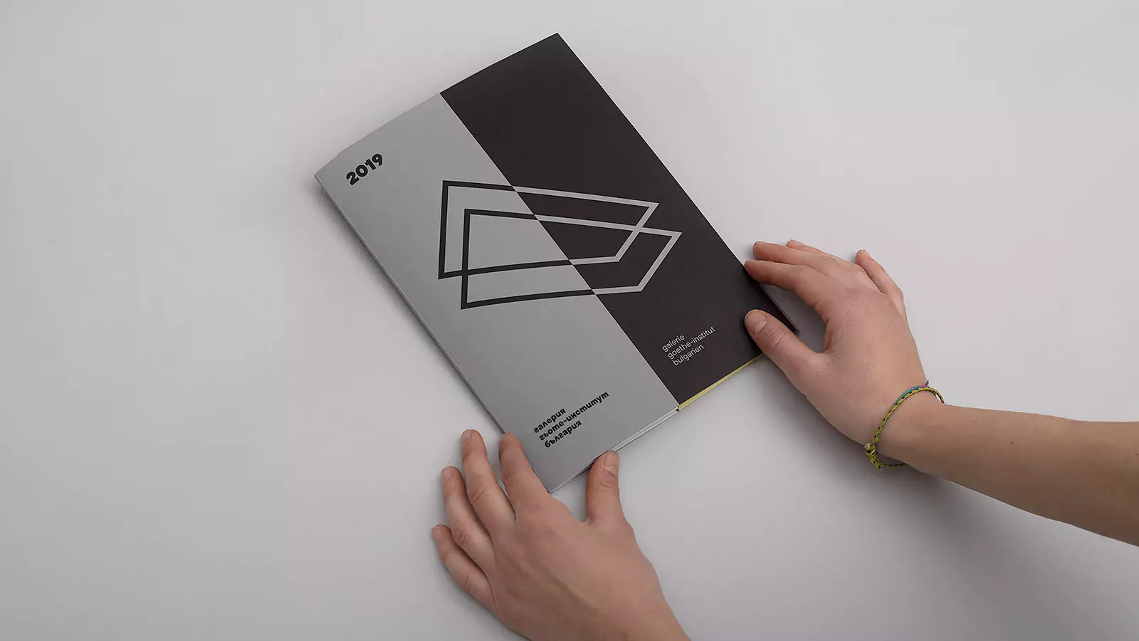 For Goethe-Institut Bulgaria’s 2019 gallery catalogue, we were tasked with creating a visually dynamic archival piece that broke away from traditional, linear formats. We crafted two interconnected booklets, which could be enjoyed together or separately, creating an engaging contrast between opposing elements. The design features bold black and grey covers with geometric shapes that play with negative space, while inside, soft greys and pale yellows set a calm yet engaging tone. This dual-booklet structure invites the reader to make new connections or embrace confusion, reflecting the diverse artistic expressions showcased by the gallery. The project was a fusion of culture and design, merging sophisticated narrative with an approachable, playful aesthetic, ensuring that the works of local artists are not only documented but experienced in a new way.